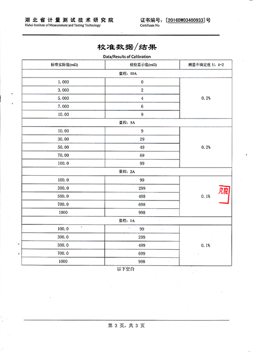 測量范圍 1A       1μΩ~20Ω