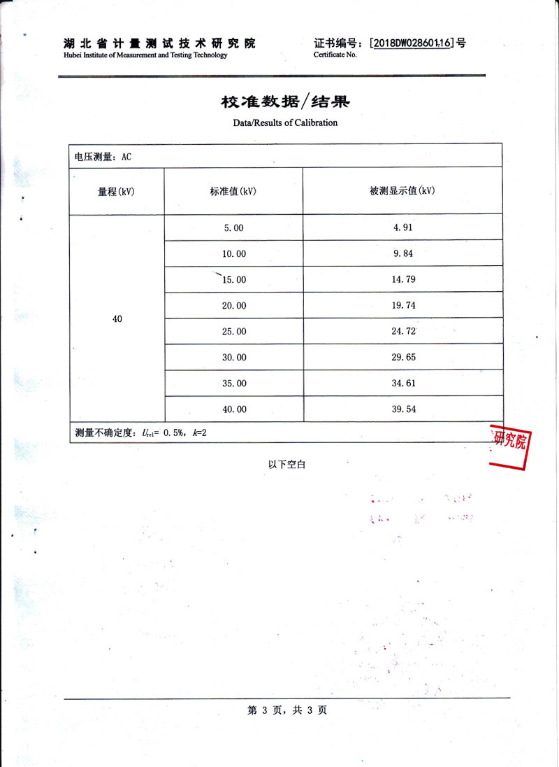 | 測量電壓范圍 | 0 - 40kV(特殊電壓可定制) |