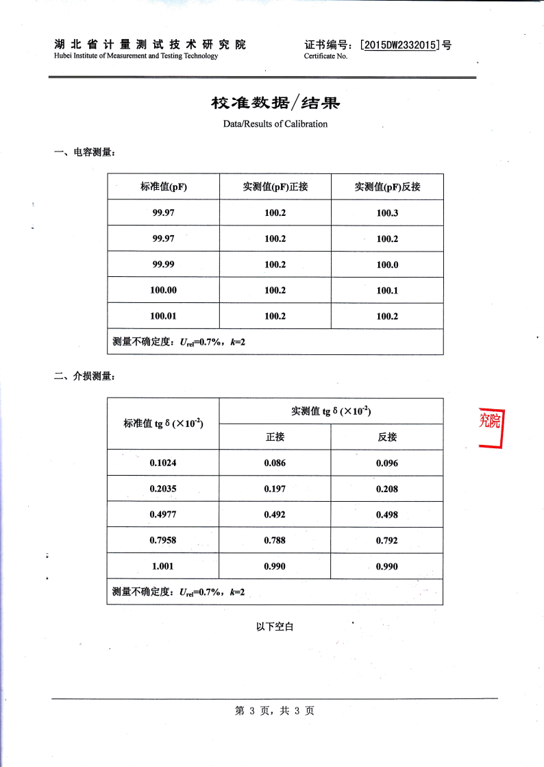 0.001% < tgδ < 100% 內(nèi)施高壓:3pF~60000pF/10kV 60pF~1µF/0.5kV 外施高壓:3pF~1.5µF/10kV 60pF~30µF/0.5kV |