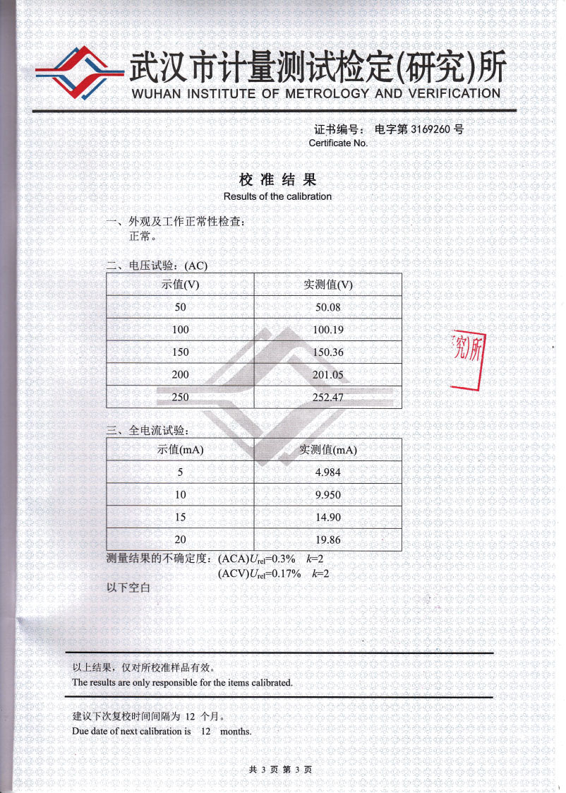 | 全電流系統(tǒng)測量準(zhǔn)確度 | ±(讀數(shù)´3% + 1個字) |