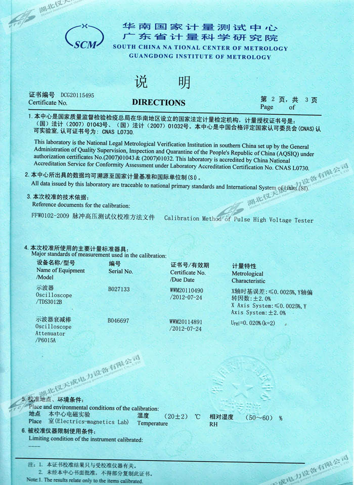 轉載:"YTC3981真空度測試儀的資質證書" 請注明來源于儀天成電力。 更多技術問題請致電儀天成電力客戶服務:027-87876585,技術部專線:027-87876585,在線客服:719388481